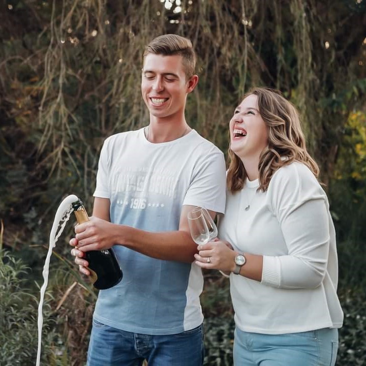 Ons liefde het in 2018 begin ons was goeie vriende en op my sus se verjaarsdag partytjie het die man my gevra om sy meisie te wees. Een oggend kry ek my eerste soen, nogals skelm by die skool agter die klaskamer, elke oggend by die skool se kafeteria koffie gaan drink, en glo my was dit die aakligste koffie maar tog die beste memories… ons liefde het net begin blom en op 26 November 2022 het hy die groot vraag gevra… na amper 5 jaar staan ons nog sterk en op die drumpel van ‘n nuwe fase.